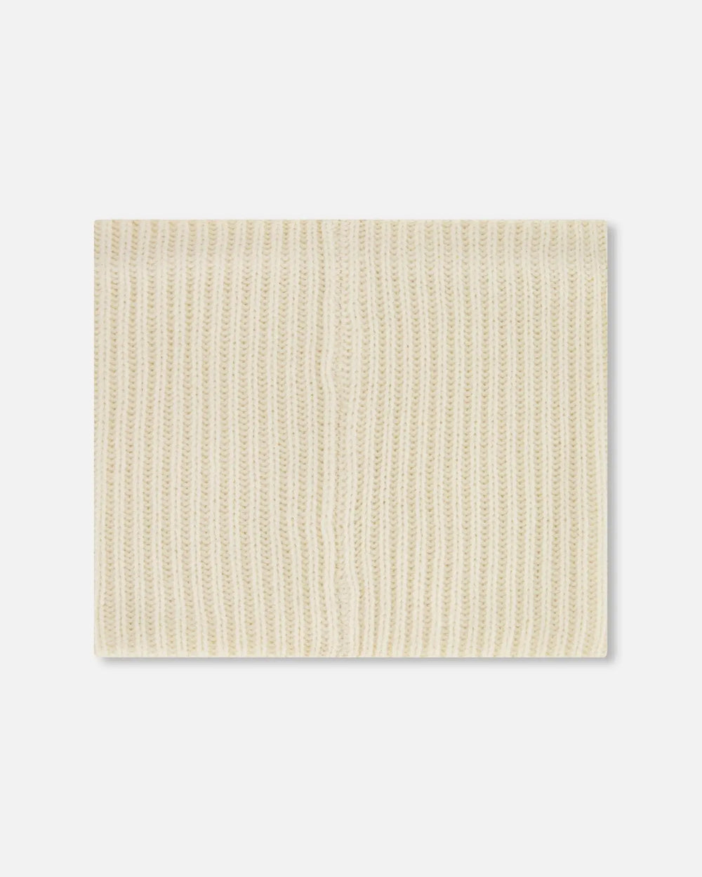 In soft and stretchy acrylic yarn, this mid-season neck tube is perfect for transitional weather days that require an added layer. With a classic vertical ribbed knit texture, this neck warmer pulls on easily over the head and features a small logo label for a touch of signature style.
