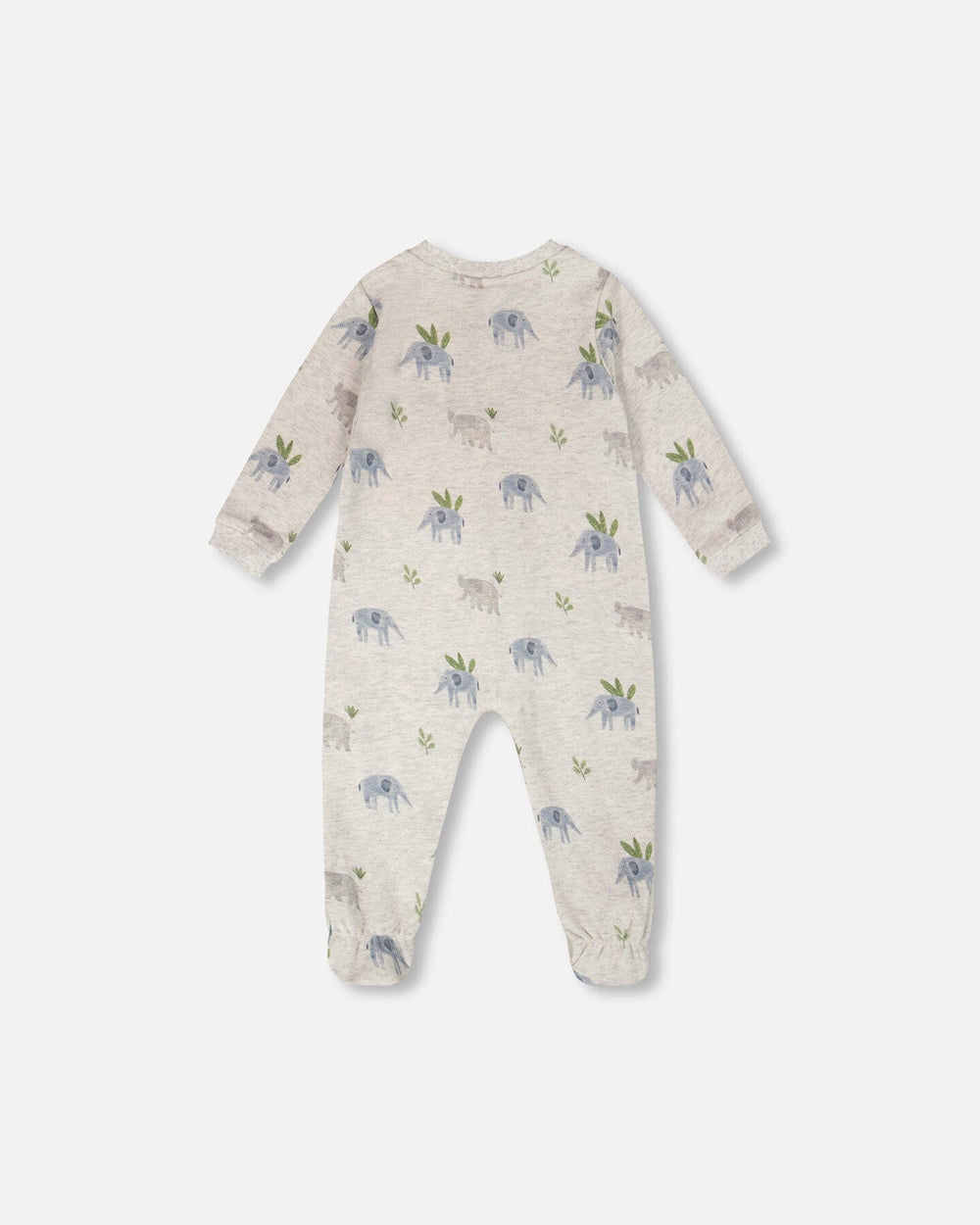 Organic Cotton Baby One-Piece Pyjama Grey Elephant Print