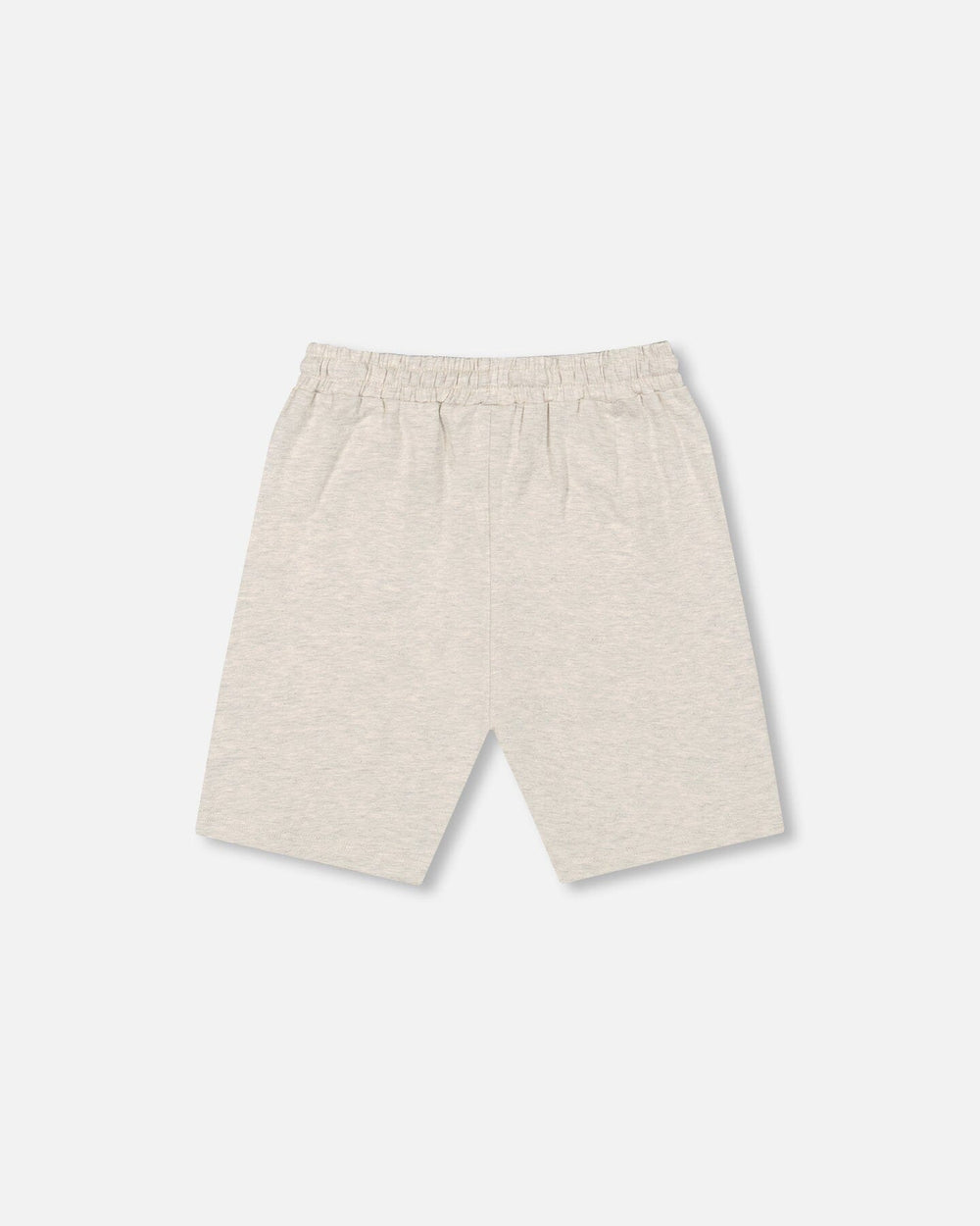 The organic cotton jersey shorts in heather grey is the perfect mix of comfort and adventure. These bottoms feature an elastic waistband with drawstring, two side pockets, and a relaxed cut made for running, climbing, and playing all day long. Made from soft organic cotton jersey with a hint of stretch, it’s light, breathable, and ready for every summer escapade.