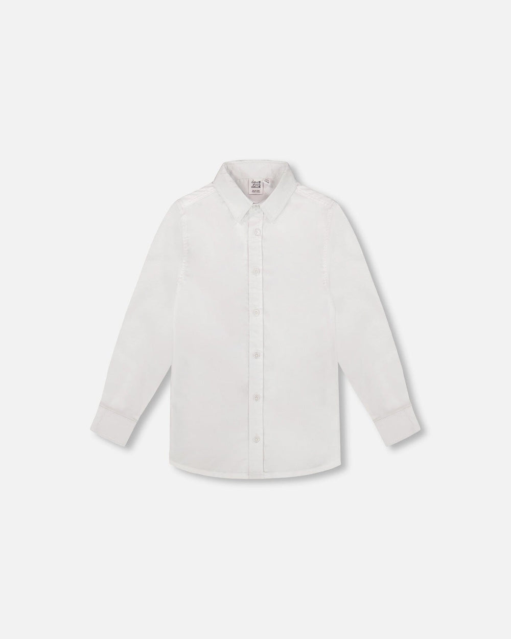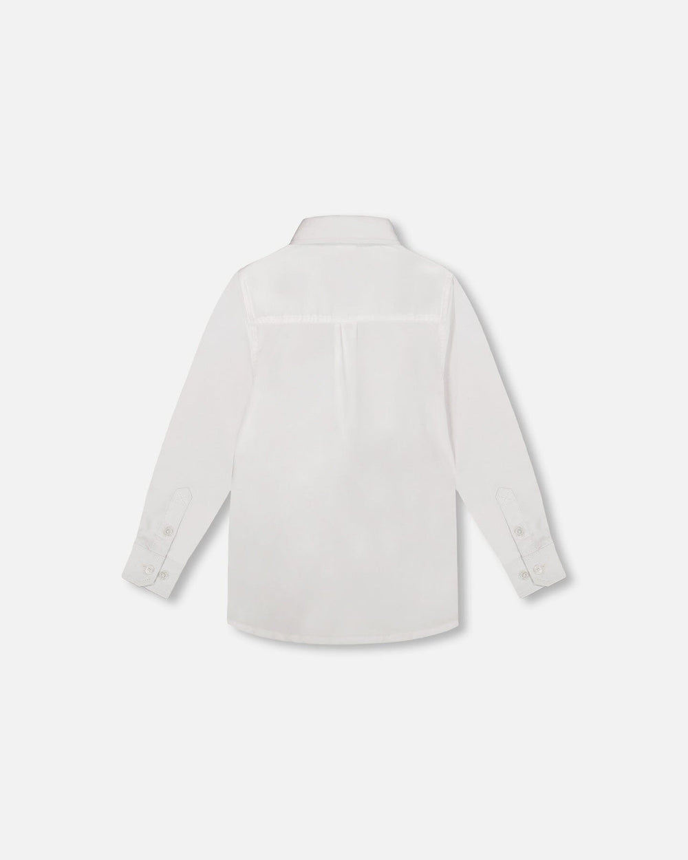 This button down long sleeve shirt in white is a timeless piece for boys’ wardrobes. The classic shirt includes a pointed collar, buttoned cuffs, and a neat front placket that gives it a polished finish. Made from a soft cotton blend, it combines everyday comfort with a dressy touch perfect for both casual outings and special occasions.
