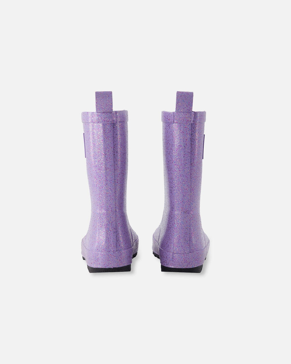 Our natural rubber rain boots in purple glitter are designed to keep little feet dry and comfortable through every puddle adventure. Crafted from 100% natural rubber, they feature a cute allover glitter effect, and a fine plush lining for extra warmth and softness. BPA, phthalate, and PAH free, these waterproof boots are a safe and durable choice for all.