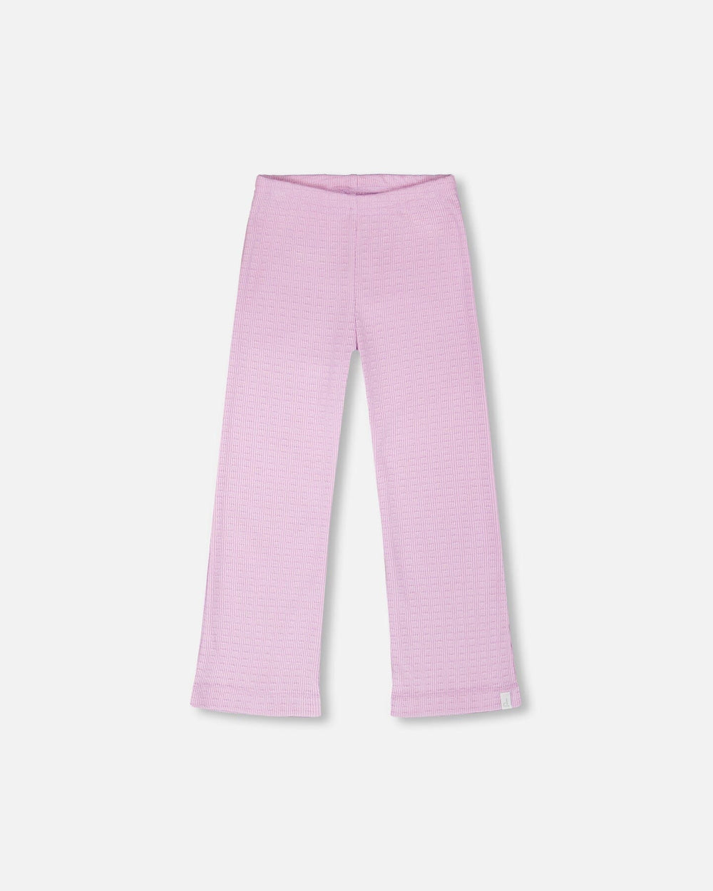 The crinkle jersey leggings in lilac bring a soft touch with playful texture. These leggings feature a slim fit at the top, an elastic waistband for easy wear, and a bottom cut that widens slightly for a gentle flared effect. Made from a lightweight crinkle jersey blend with a hint of stretch, they ensure comfort and flexibility for girls and baby girls.