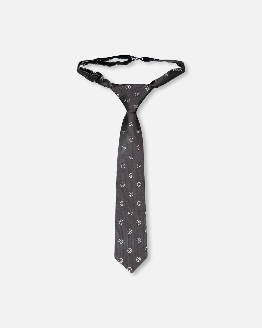 This neck tie in black with playful printed smiles brings a fun twist to a classic accessory. Designed to complete a boy’s outfit with both charm and originality, this tie balances elegance and a touch of humor. Made from smooth polyester, it ensures a polished look for special occasions or stylish everyday wear.