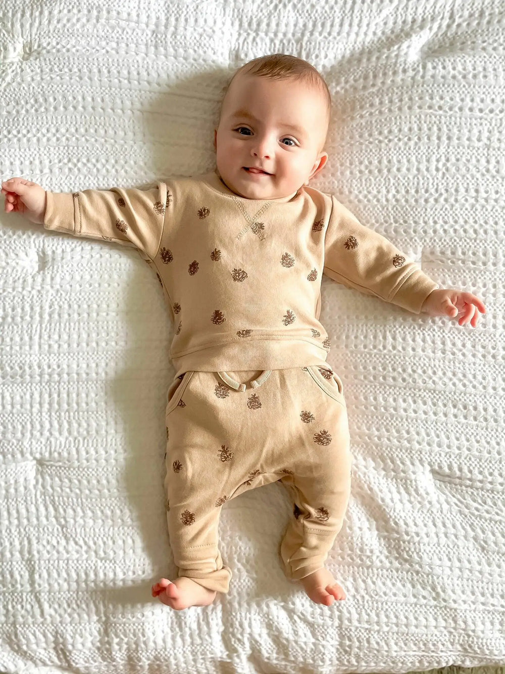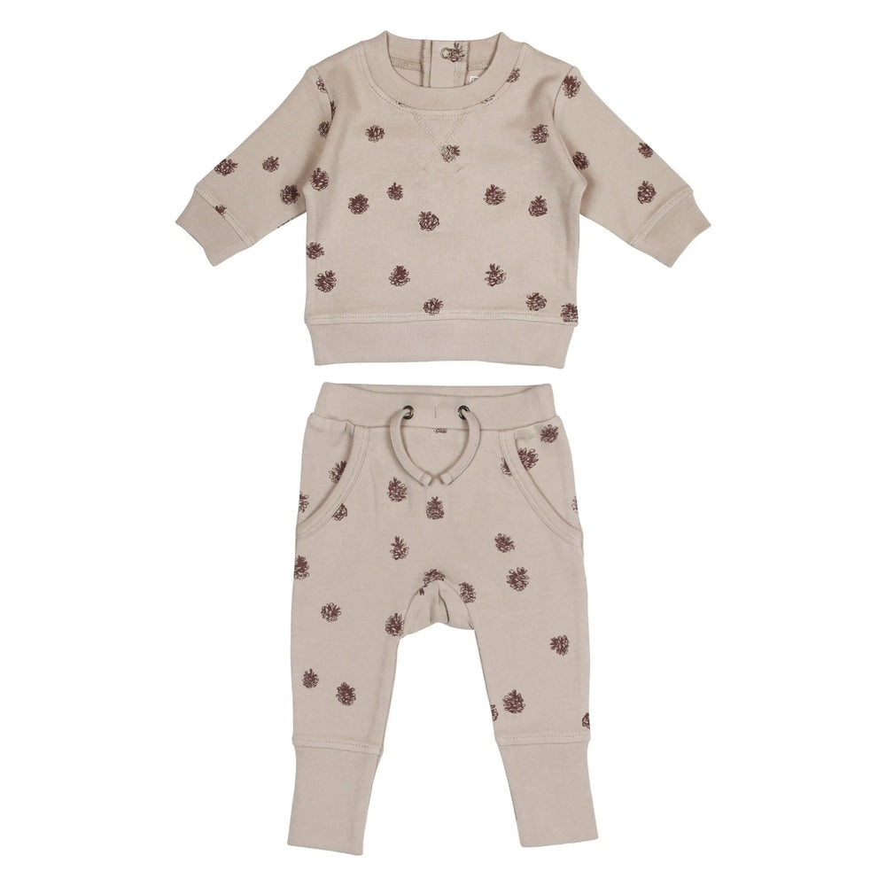 ENSEMBLE SWEAT-SHIRT ET JOGGER BIO IMPRIMÉ in Oatmeal Pinecone | L'ovedbaby