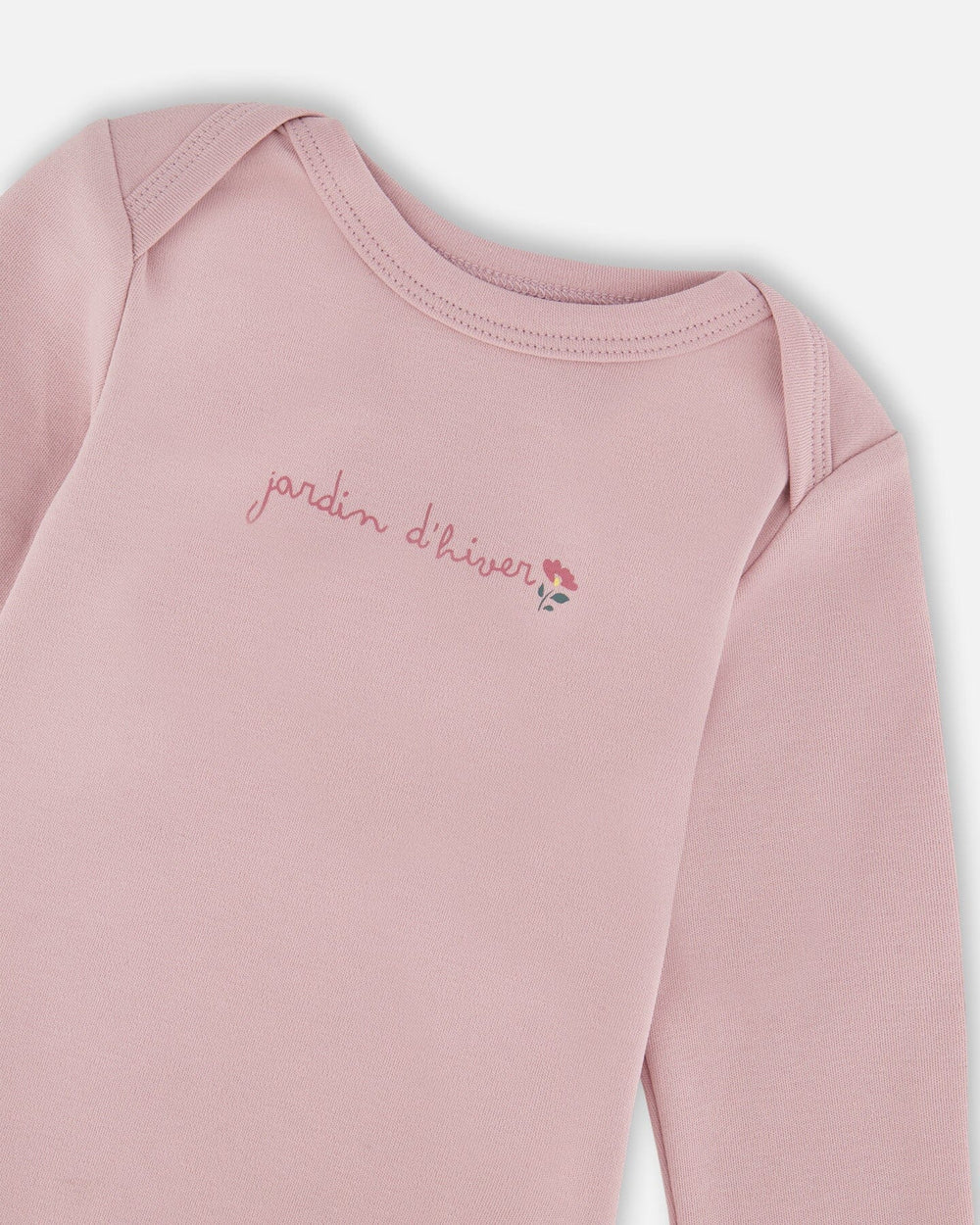 Soft, cozy, and perfect for everyday wear, our Organic Cotton Long Sleeve Romper Neutral Purple is designed for all-day comfort. This onesie features long sleeves to provide warmth, while bottom snap closures and a wrap-over collar ensure easy dressing. A delicate “Jardin d’hiver” inscription with a floral accent on the front adds a poetic touch to this timeless wardrobe staple.