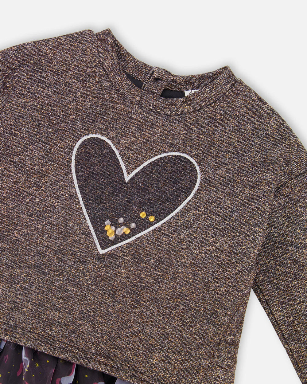Bi-Material Dress Black With Mesh Skirt And Heart