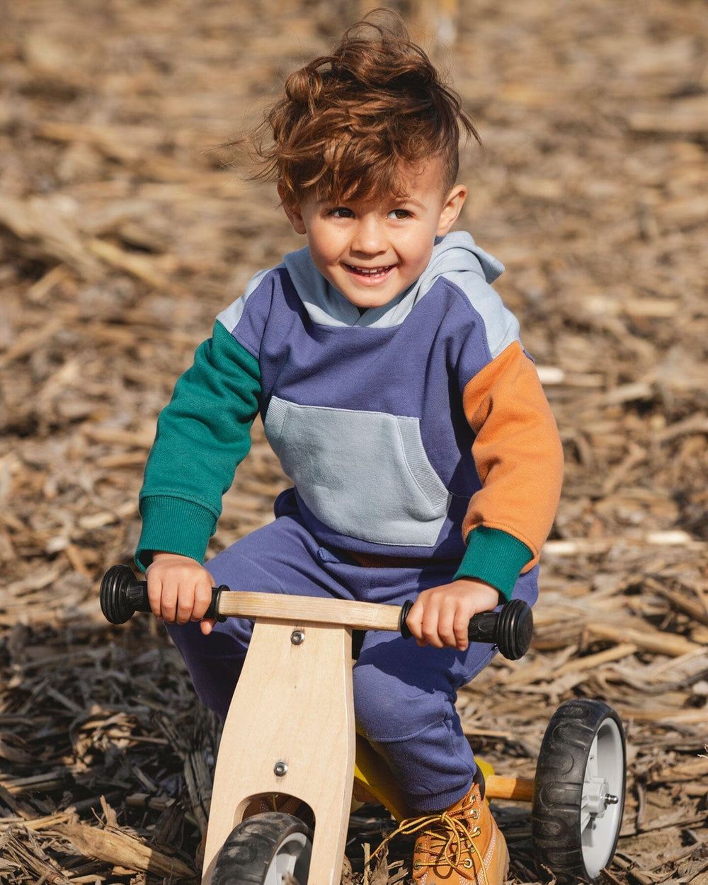 Contrast sleeves add bold pops of color to this cool color blocked fleece hoodie. In a cozy pullover silhouette made from cotton/poly fleece, this sweatshirt features a contrast hood, a contrast kangaroo pocket, and soft rib knit trim at the hem. Mix and match it with any bottom in The Mammoth Era collection!