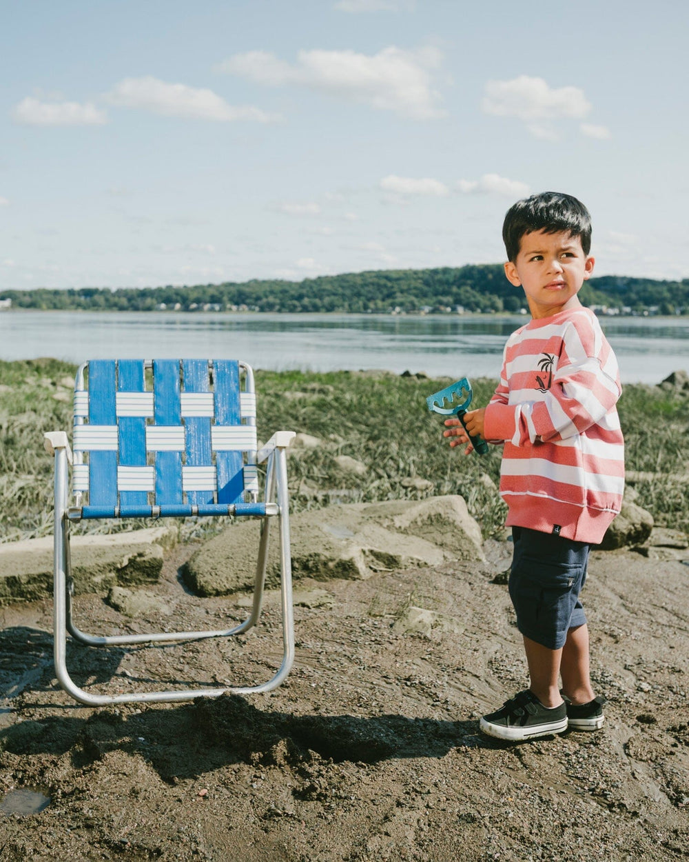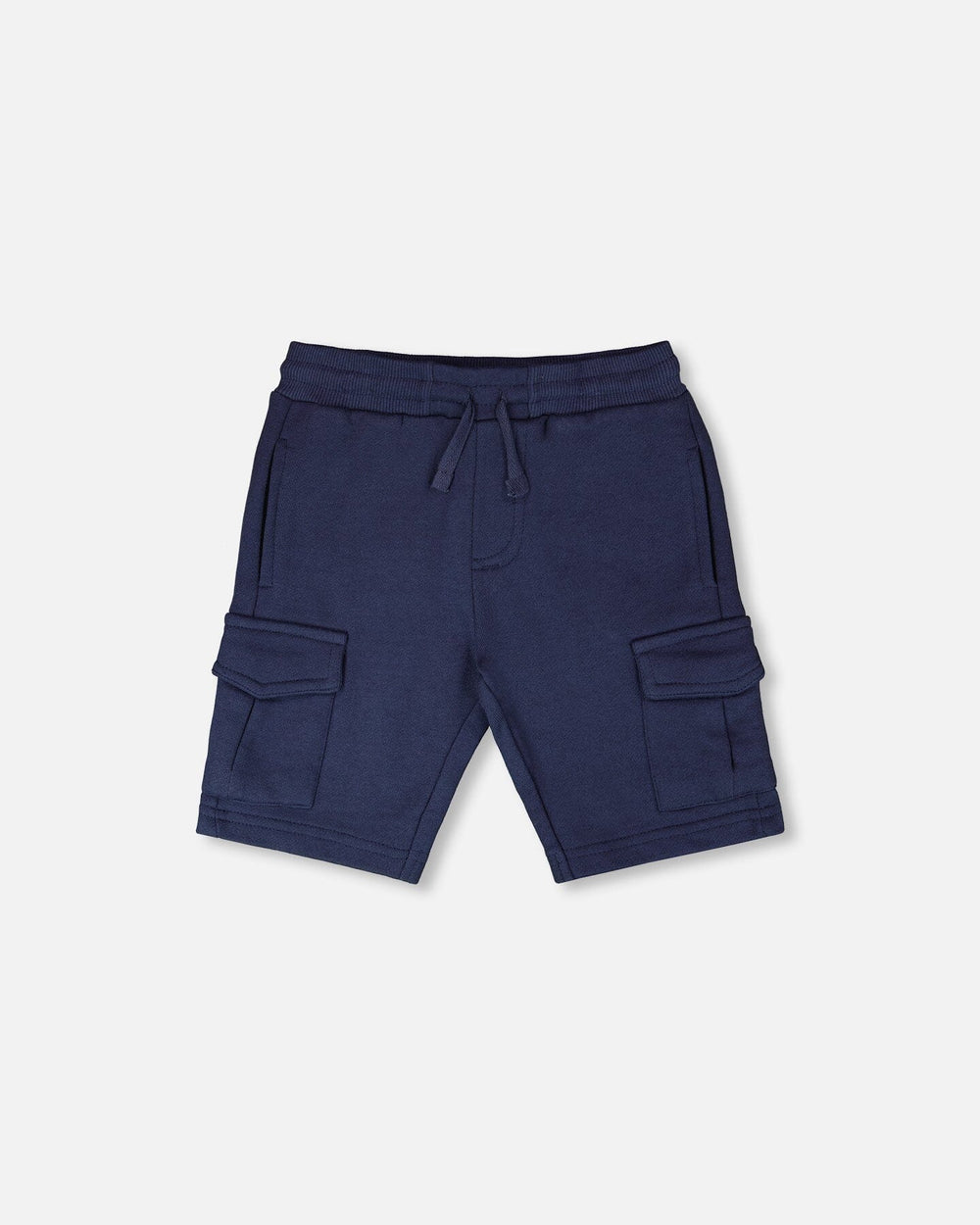 The French terry shorts in blue are a comfy yet practical summer essential for boys. These bottoms are designed with an elastic waistband for easy pull-on wear, slit side pockets, and functional cargo pockets for a casual utility look. Made from soft cotton-blend French terry, they are perfect for play and everyday adventures in the “Coastal Days” collection.