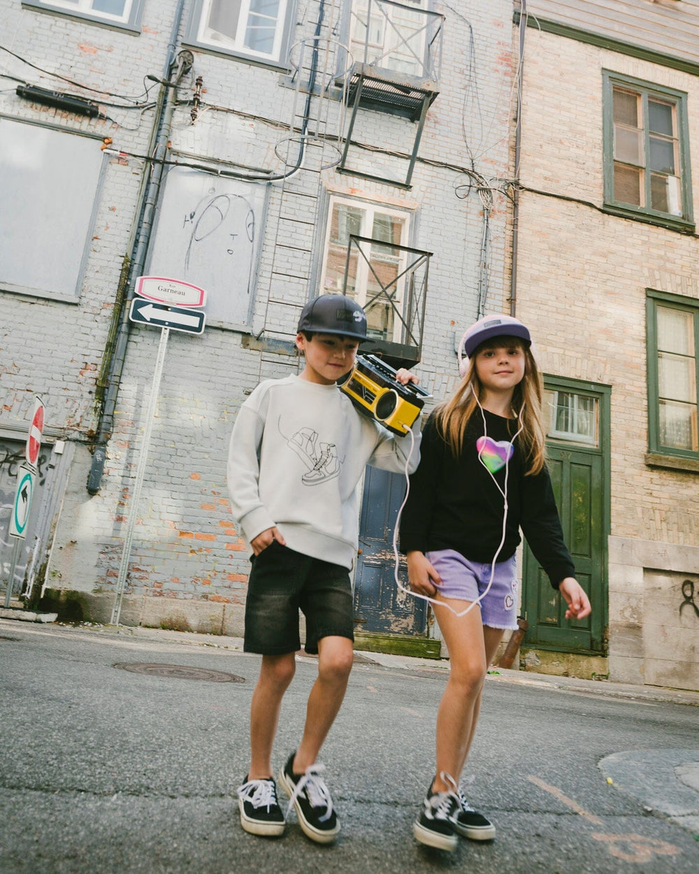 This organic cotton jersey long sleeve t-shirt in black is a versatile piece with a playful twist. This top features a round neckline, long sleeves, and a bold 3d rainbow-colored heart at the center front. Made with organic cotton and a hint of stretch, it combines comfort and style, and pairs with any bottoms from the “Wild Heart” collection.