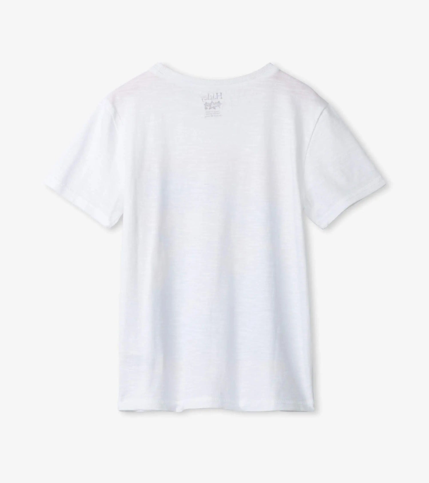 Un graphique ludique de dinosaure orne le devant de ce t-shirt en coton doux.