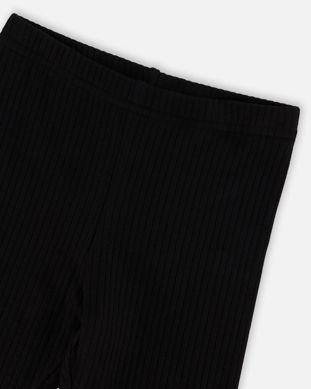 The rib biker leggings in black give a sporty edge to everyday outfits. These leggings feature a snug mid-length cut, a stretchy ribbed texture, and a soft elastic waistband for easy pull-on comfort. Made in cotton with added elastane, they are perfect for playtime, layering, or simply moving with ease.