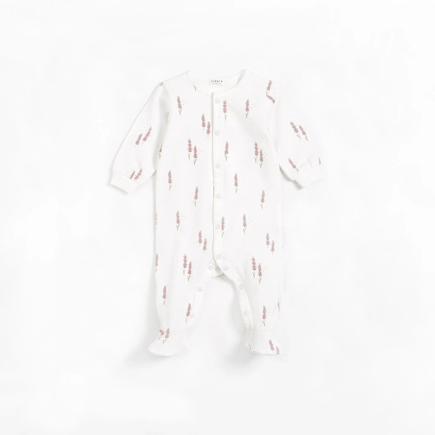 This cozy sleeper with all over lavender print is perfect for sleepy Sundays. Lavendar is perfect for relaxing, and this sleeper, made from organic cotton jersey, will keep your little one comfy and calm. The elasticated cuffs, integrated feet and rounded neckline are all designed with baby’s comfort in mind, while the snap buttons down each leg make changing easier for mum and dad.
