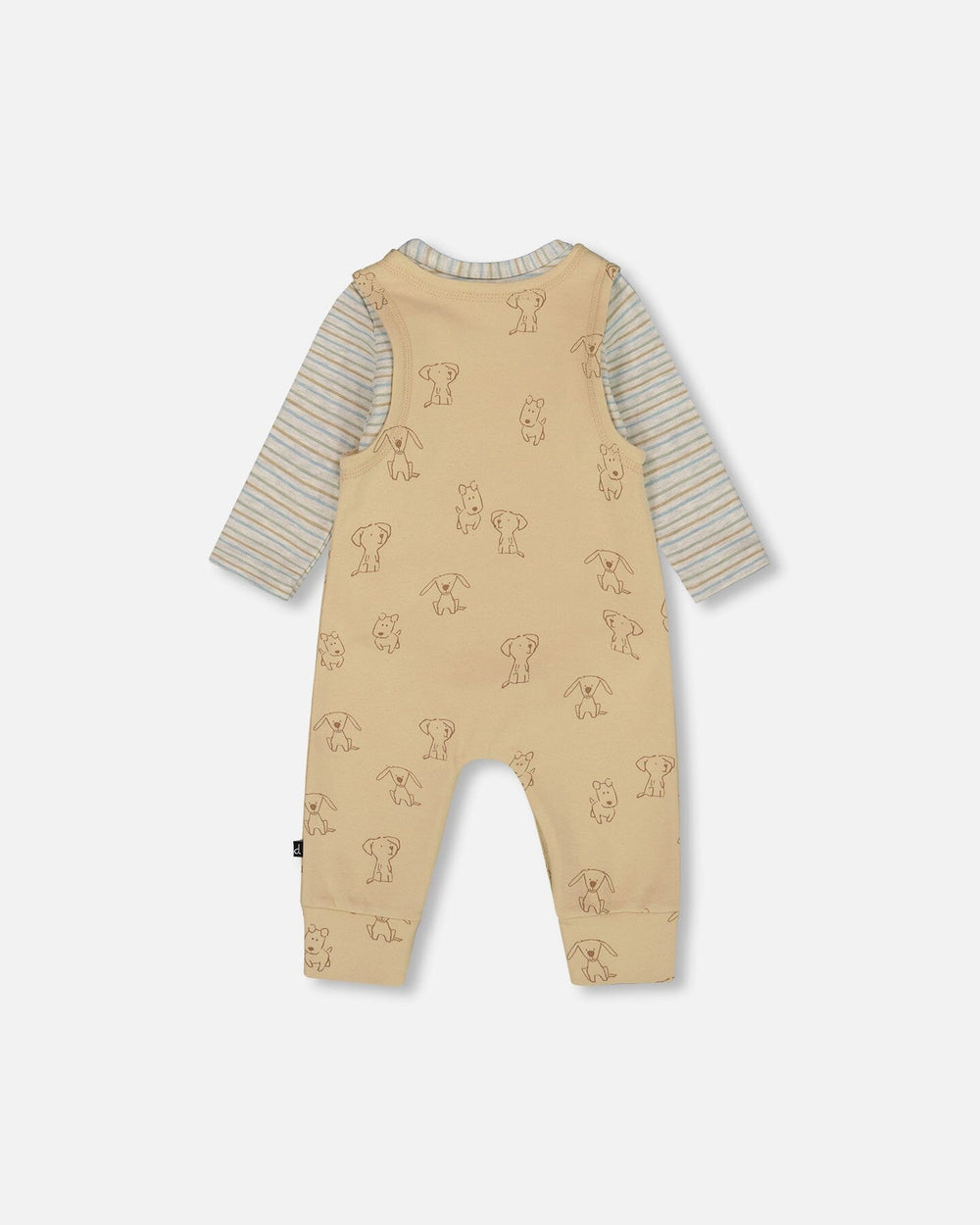 Organic Cotton Onesie With Overalls Set Beige Printed Dogs