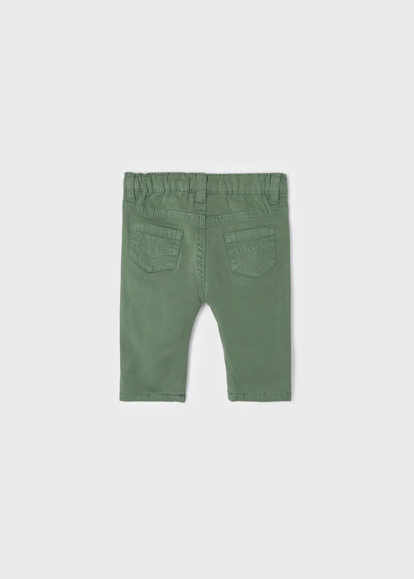 Pants for newborn from our casual line to create a modern, laid-back look. Adjustable elasticated waistband to fit the waistline perfectly. Elasticated waistband with button fastening. Made from comfortable and resistant twill fabric. Design with mock pockets on the front and functional on the back. Decorative elements: stitched details.