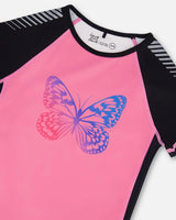 Printed Short Sleeve Athletic Top Pink With Butterflies