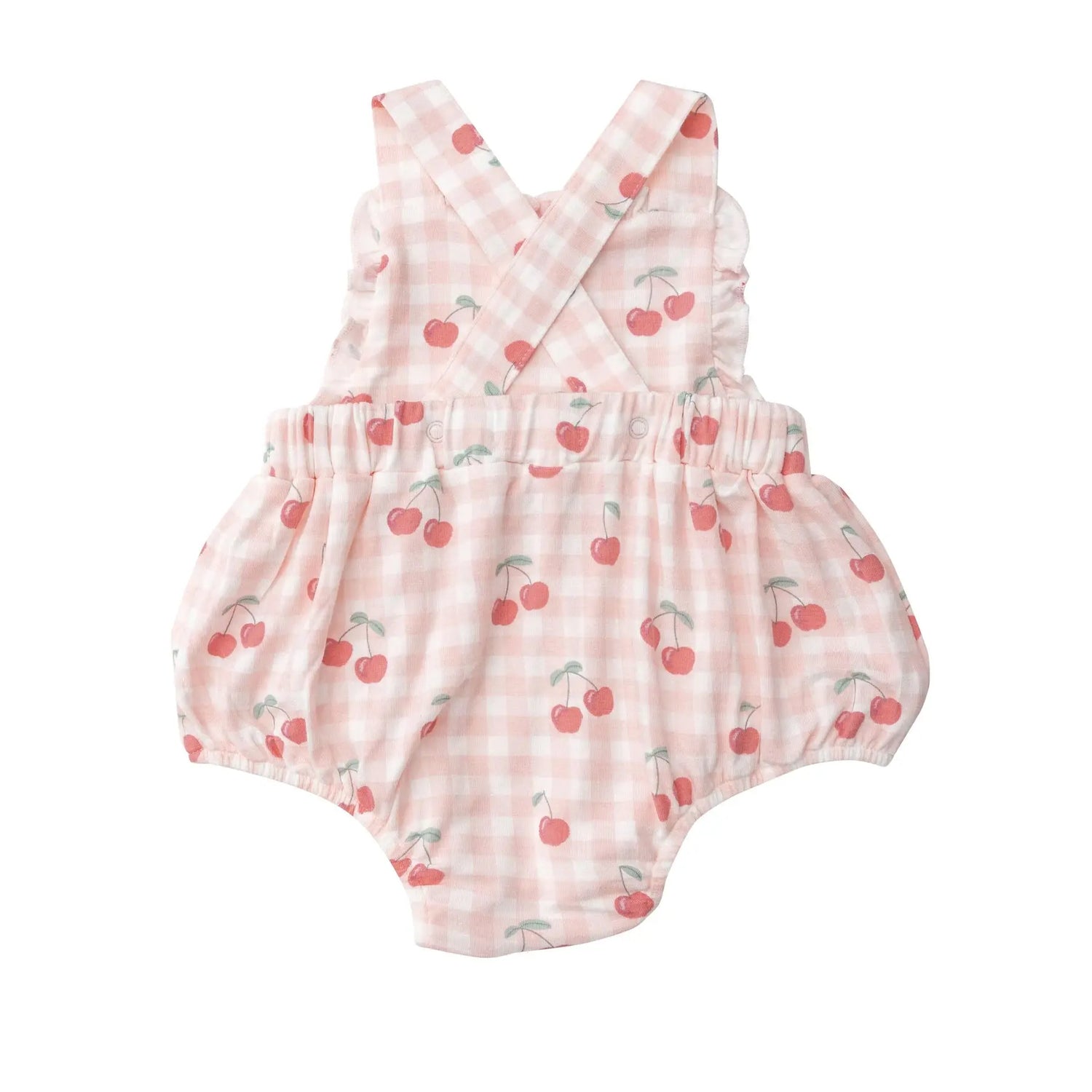 Ruffle Bib Sunsuit - Cherry Gingham | Angel Dear
