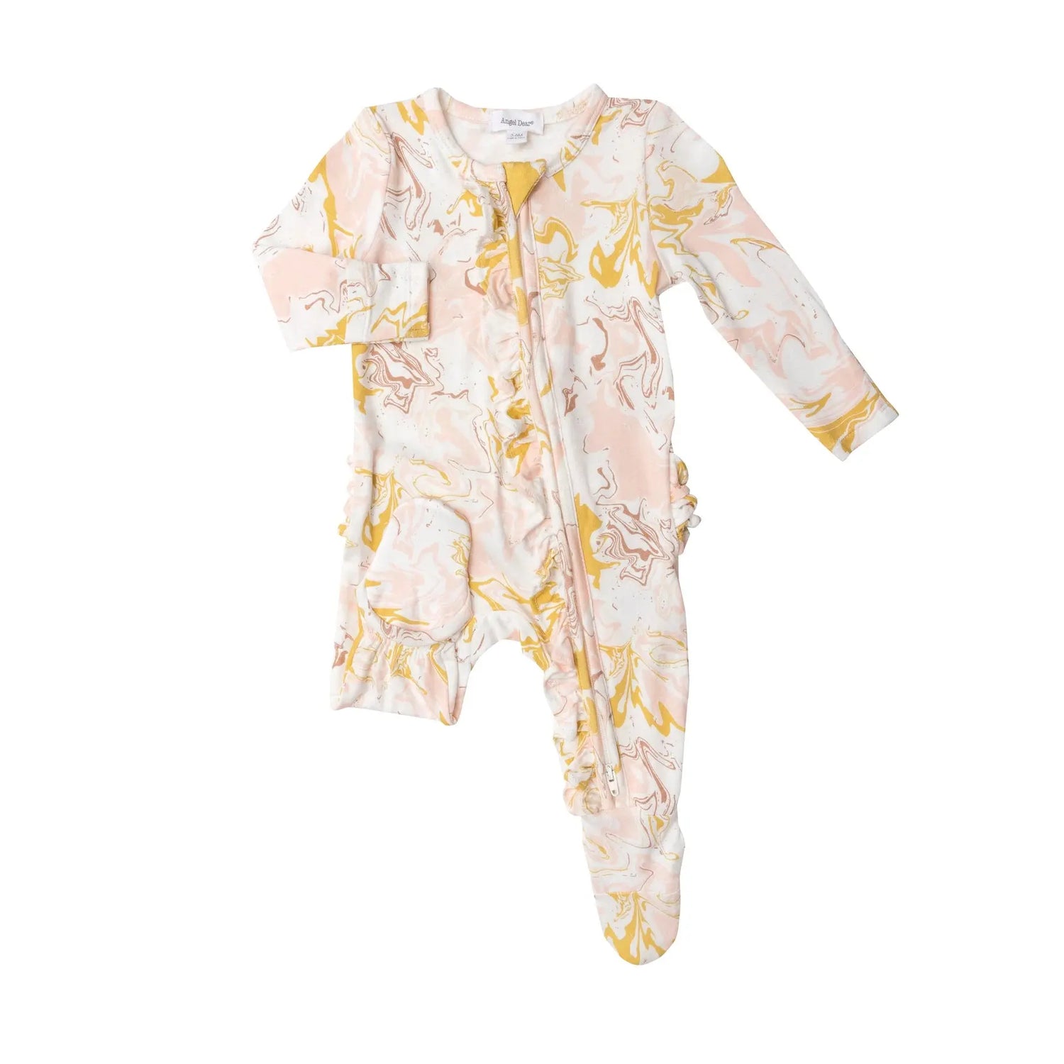 Ruffle Front Zipper Footie - Marble Pink | Angel Dear