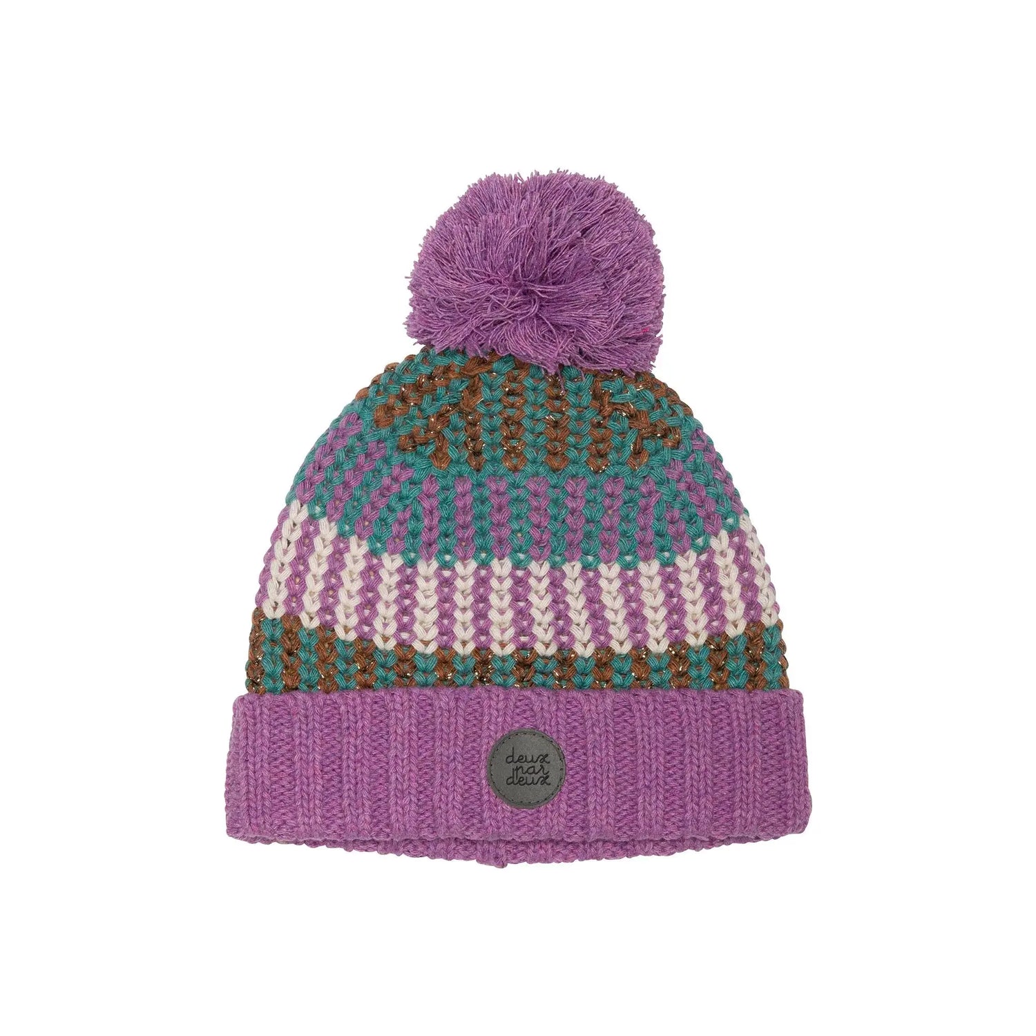 Striped Knit Hat Purple, Green, Brown And White | DEUX PAR DEUX