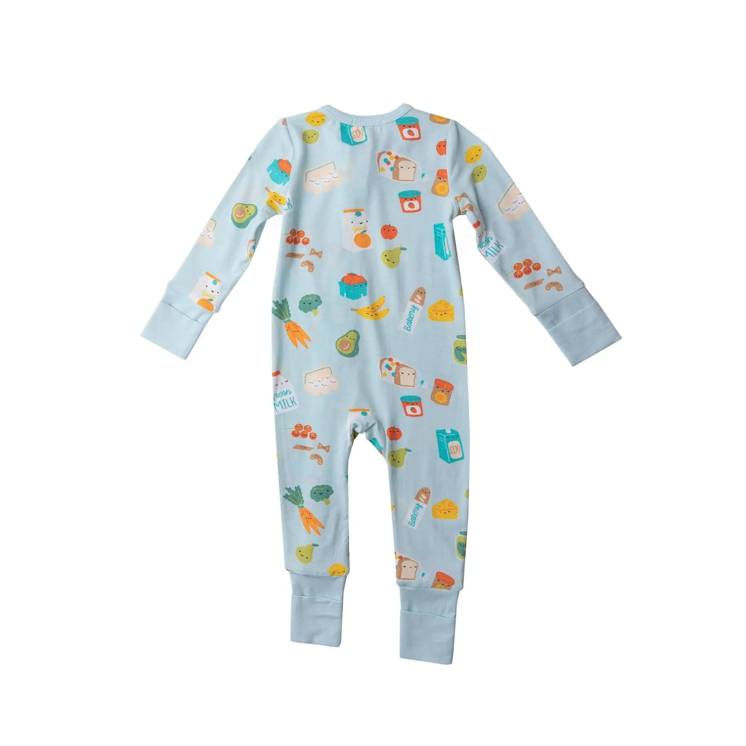 Two Way Zipper Romper - Groceries - Blue | Angel Dear