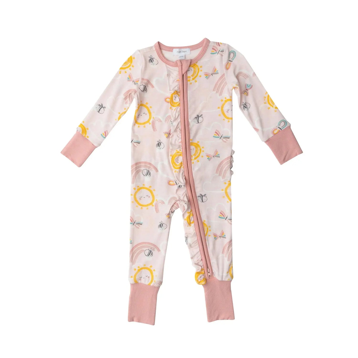Two Way Zipper Romper - Inky Bees - Pink | Angel Dear
