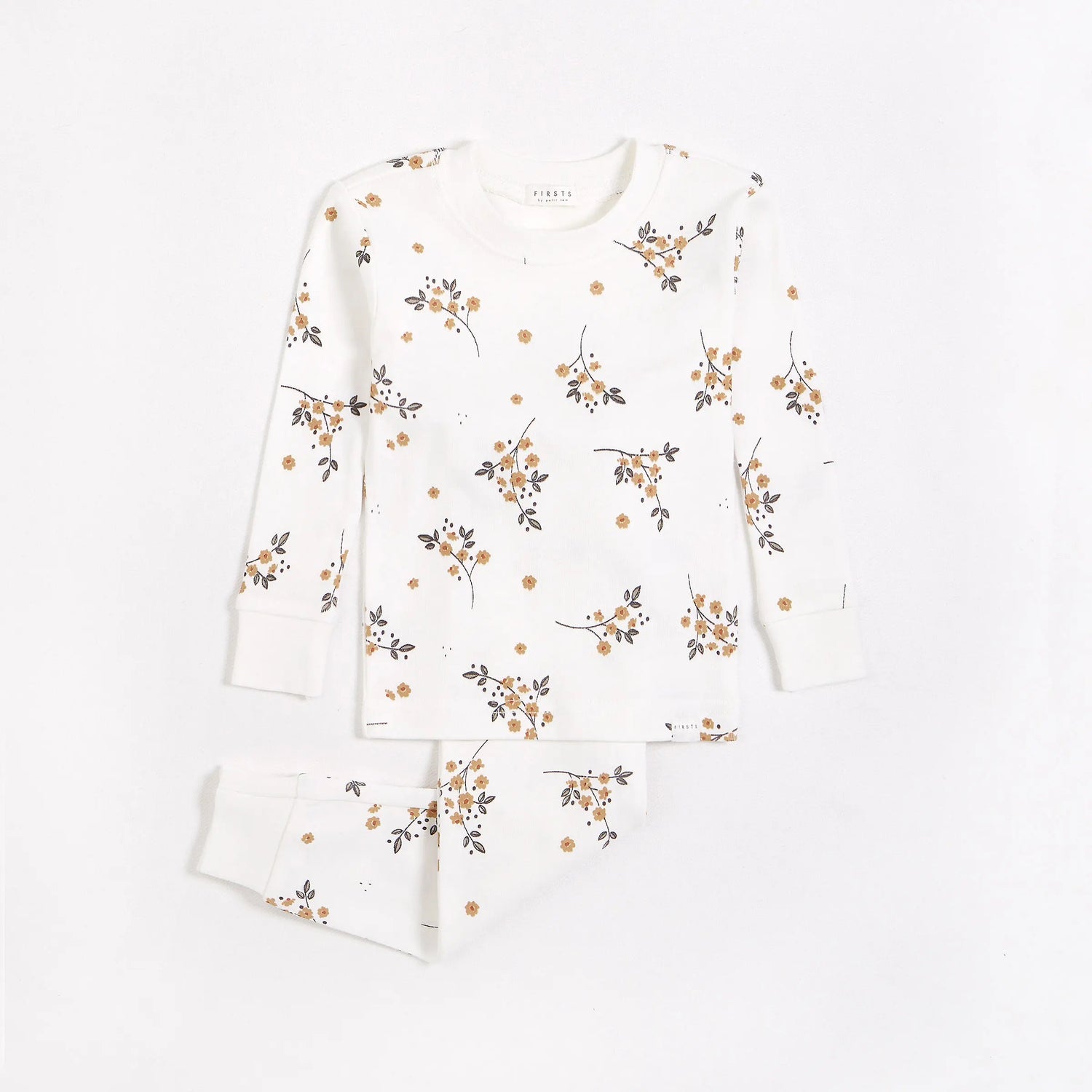 Winter Jasmine Print on Off-White Infant Pyjama Set | Petit Lem